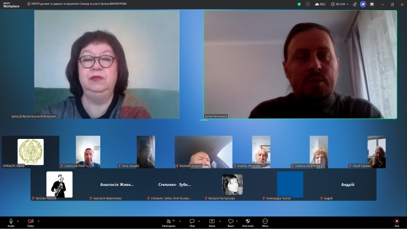27 лютого 2026 року в режимі online на платформі ZOOM відбувся Семінар викладачів ударних та духових інструментів мистецьких шкіл за участі Володимира ПЕХА, старшого викладача вищої категорії Харківського національного університету мистецтв імені І.П. Котляревського за темою: «Проблеми та перспективи удосконалення методики навчання грі на ударній установці».