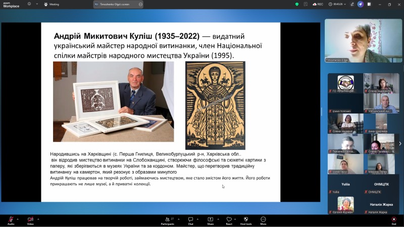 26 квітня 2026 року в режимі онлайн на платформі ZOOM відбувся творчий воркшоп «Магія витинанки», який ми провели разом з громадською організацією «Освітній діалог». Воркшоп об’єднав викладачів мистецьких шкіл з Вінницької, Дніпропетровської, Сумської, Полтавської, Черкаської, Харківської, Київської, Миколаївської областей. Захід став простором натхнення, професійного спілкування та занурення у традиційне українське мистецтво.