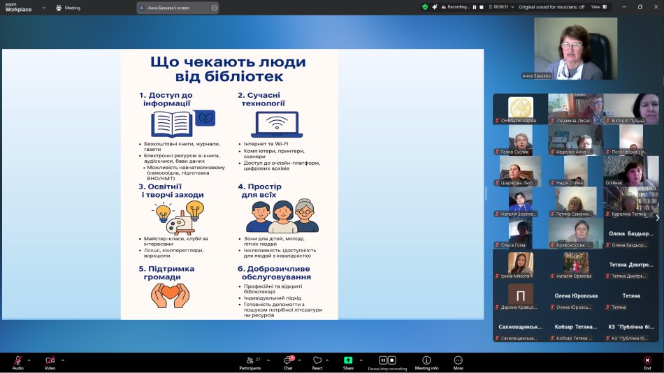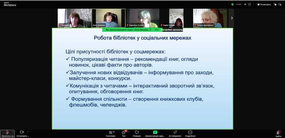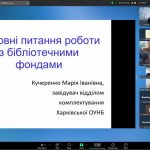 Понад 30 завідувачів бібліотек-філій публічних бібліотек та бібліотечних працівників Харківської області та місті Харкова з 06 по 09 жовтня 2025 року дистанційно, на платформі ZOOM, проходили підвищення кваліфікації за темою: «Підвищення професійної компетентності бібліотечних працівників: нові пріоритети і вимоги».