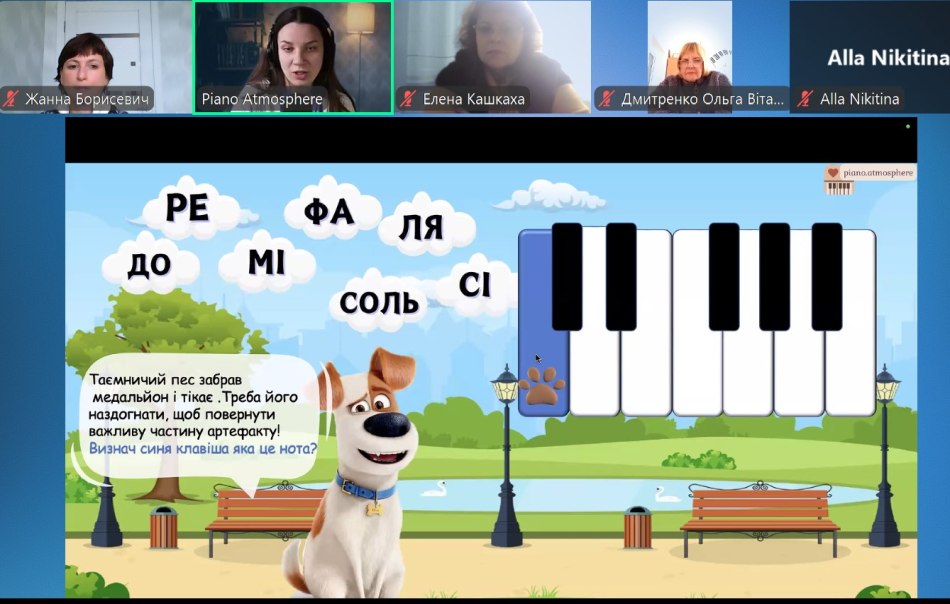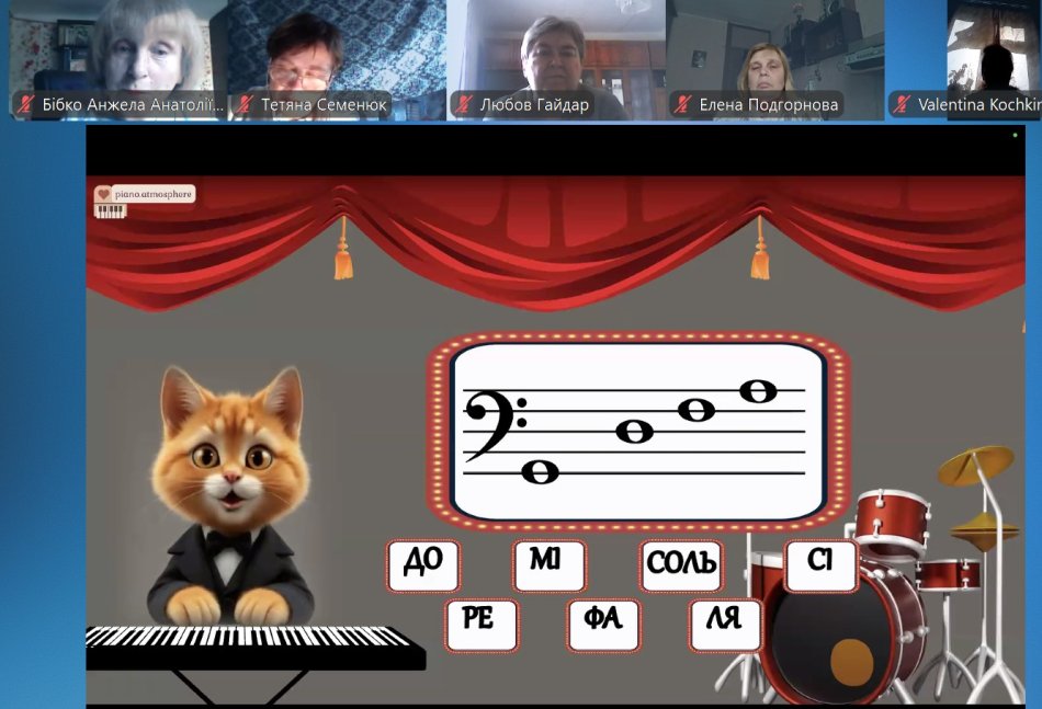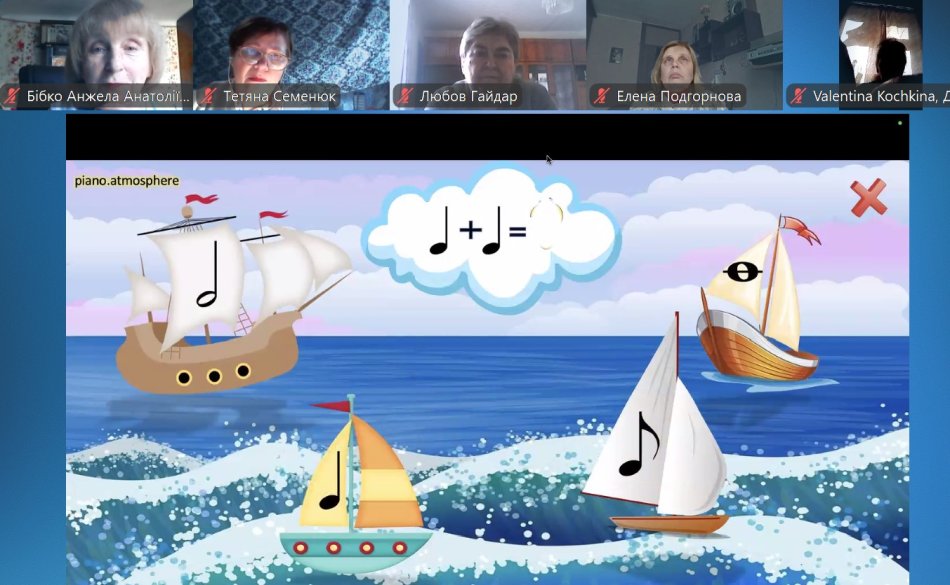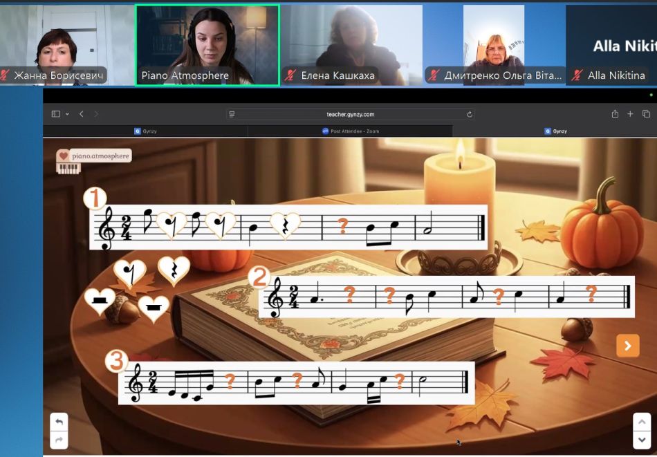 Тетяна Коцур (м. Чернігів) розповіла учасникам семінару про ігри-презентації, котрі пов’язані із сучасним підходом до вивчення теорії музики. Спікерка продемонструвала власні авторські цікаві розробки. Її доповідь містила передісторію створення ігор, огляд ігор-презентацій, онлайн-дошку Gynzy. Т. Коцур показала приклади створених завдань, котрі можна використовувати на онлайн-заняттях; а також покроковий процес та демонстрацію функціоналу Gynzy і розповіла про те, що необхідне для проходження ігор, і як ці ігри допомагають юним музикантам у вивченні теорії музики.