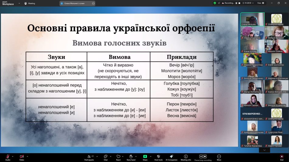 Викладачі отримали фахову інформацію щодо питань наголошування слів в українській мові. Лектор дала відповіді на всі професійні питання відповідно до норм літературної української мови.