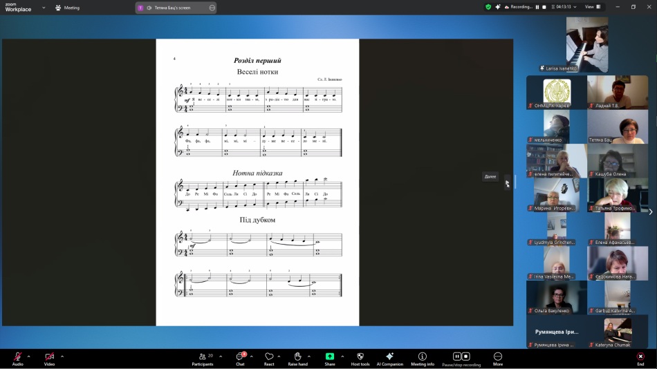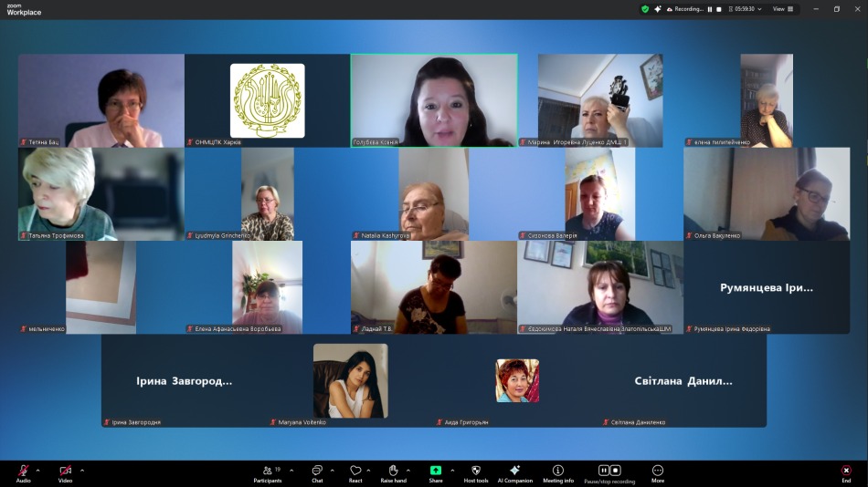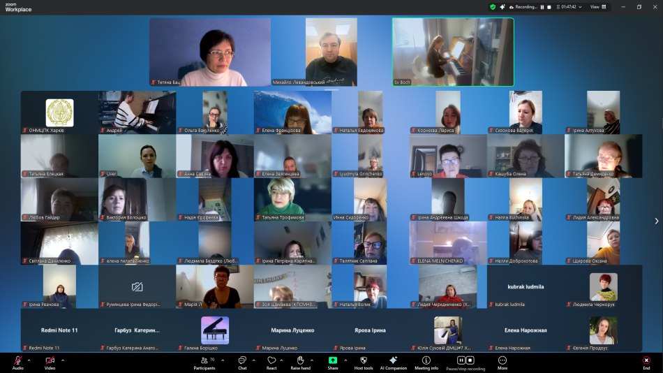 З 17 по 20 листопада 2025 року в режимі онлайн на платформе ZOOM підвищували професійний рівень викладачі класу фортепіано та концертмейстери мистецьких шкіл Харківської області та міста Харкова за темою: «Удосконалення професійно-педагогічних компетентностей. Методи, сучасні технології»..