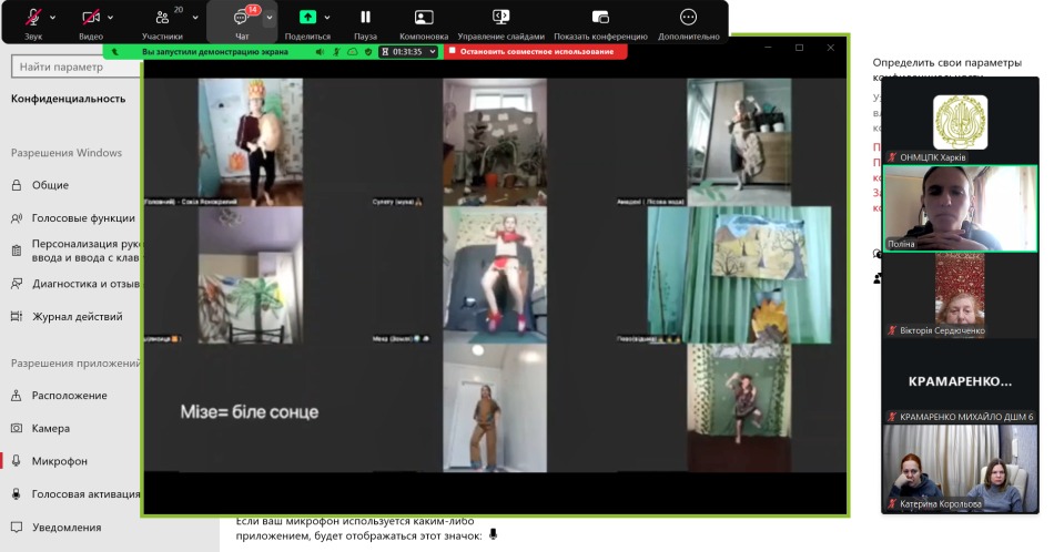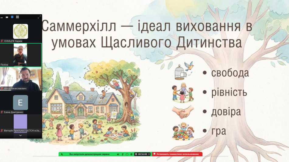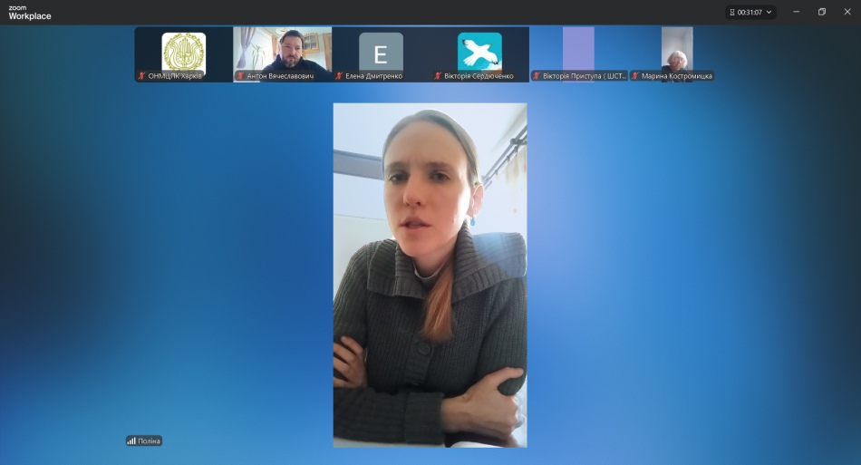 Пані Поліна проілюструвала доповідь відеоприкладами з власного досвіду роботи. Окрему увагу приділила питанням використання арттерапевтичних практик, а саме, іграшкотерапії, сказкотерапії в роботі викладача театрального мистецтва.