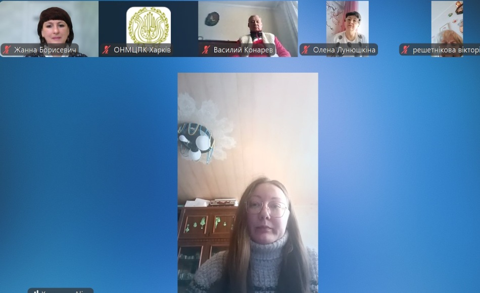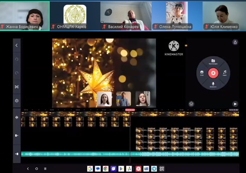 Спікерка поділилась додатками, що використовує для монтування віртуальних хорів: Inshot, You cut, Vn – відеоредактор, продемонструвала приклади концертних виступів віртуальних хорів. Завершився семінар чудовим твором «Пісня про Харків» у виконанні хору молодших класів під її керівництвом.