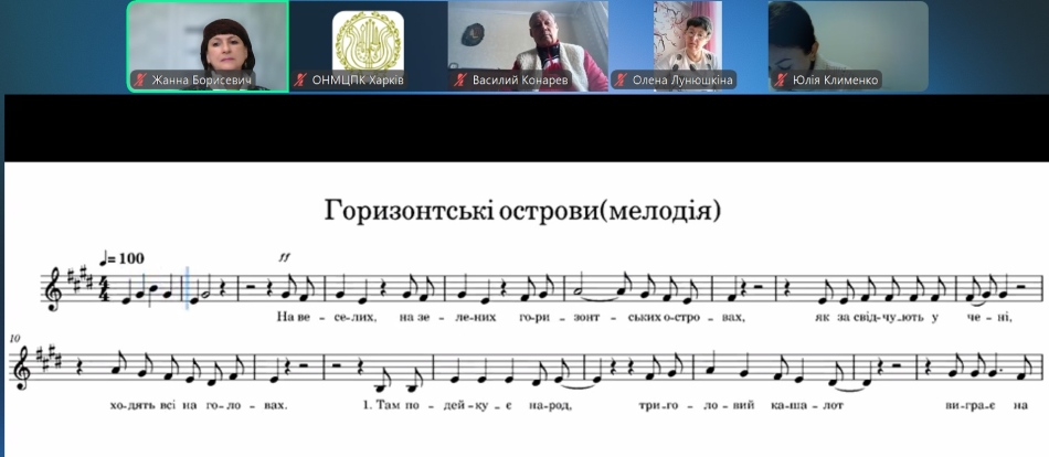 25 лютого 2026 року в режимі on-line на платформі ZOOM відбулось обласне семінарське заняття викладачів хорових дисциплін мистецьких шкіл Харківської області та м. Харкова. На початку семінару методист-куратор привітала учасниць заходу з Днем української жінки. Це свято приурочене до дня народження видатної української поетеси та громадської діячки Лесі Українки й покликане вшанувати внесок жінок у розвиток держави. Цього року виповнилось 155 років від дня народження Лесі Українки. Її називають «співачкою досвітніх вогнів» за назвою однойменного вірша, що символізує віру в краще майбутнє. Після привітання ознайомила слухачів з новим виданням для викладачів вокальних ансамблів та хорів – збірником сучасних обробок українських народних пісень створених Іриною Ушенко.