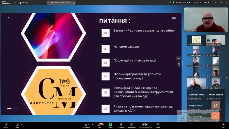 Організатори занять мали на меті надати професійну підтримку, зорієнтувати фахівців щодо роботи клубного закладу в складних умовах, допомогти працівникам клубної сфери адаптуватися до роботи в умовах воєнного стану.