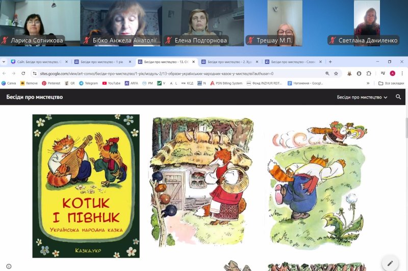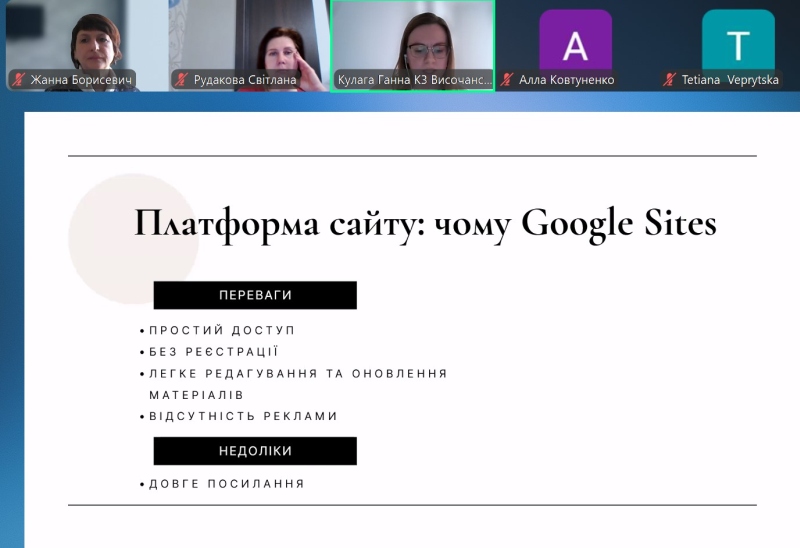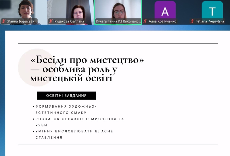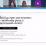 Ганна Кулага, викладач Височанської школи мистецтв виступила з доповіддю: «Сучасні освітні технології у викладанні навчальної дисципліни «Бесіди про мистецтво»: досвід створення сайту». Пані Ганна поділилася практичним досвідом використання навчального сайту як інструменту реалізації чинної програми дисципліни «Бесіди про мистецтво». Особливу увагу приділила поєднанню традиційної форми роботи із сучасними цифровими можливостями.