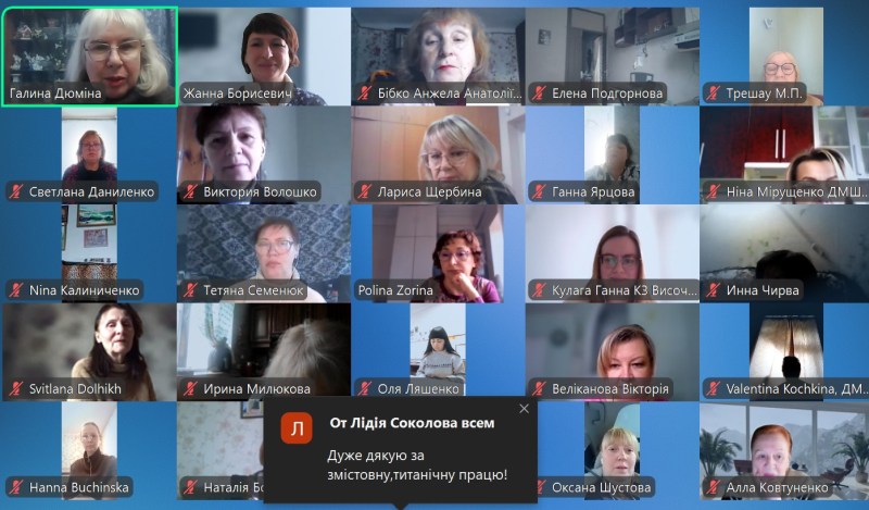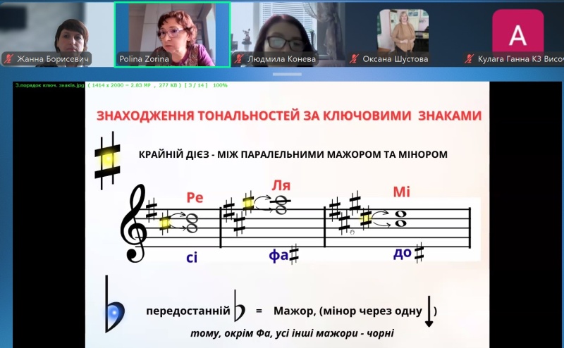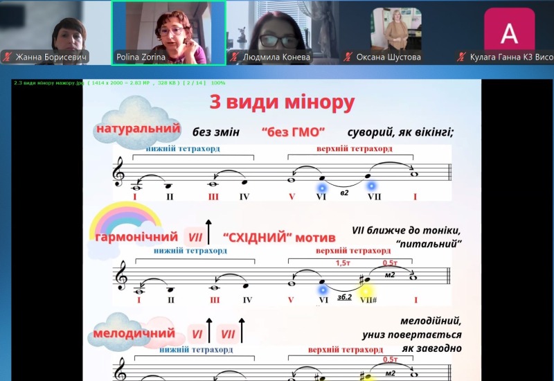 18 березня 2026 року в режимі online на платформі ZOOM відбулось семінарське заняття викладачів музично-теоретичних дисциплін мистецьких шкіл Харківщини. На початку заходу методист ОНМЦ Жанна Борисевич провела огляд навчально-методичної літератури, рекомендованої для уроків сольфеджіо й музичної літератури. Посібник «Хорове сольфеджіо» (укладачі М. Антків і Ю. Антків) побудований на матеріалі української хорової музики для вивчення сольфеджіо в старших класах мистецьких шкіл. До нього увійшли авторські твори і народні пісні, які розміщені по окремих тематичних розділах (наприклад, «Гімни, патріотичні та духовні твори», «Пісні на вірші Т. Шевченка тощо). Були також представлені книги, присвячені видатним українським мисткиням, чия творчість висвітлюється на уроках музичної літератури. Це книги Ігоря Коляди «Соломія Крушельницька», Богдана Мельничука «С. Крушельницька. Документальна повість»; Галини Домарецької «Соломія Крушельницька — зірка оперної сцени»; «Любка Колесса – українська піаністка» (укладачі Н. Кашкадамова, В. Бобицька).
