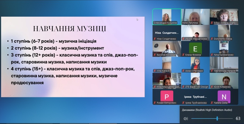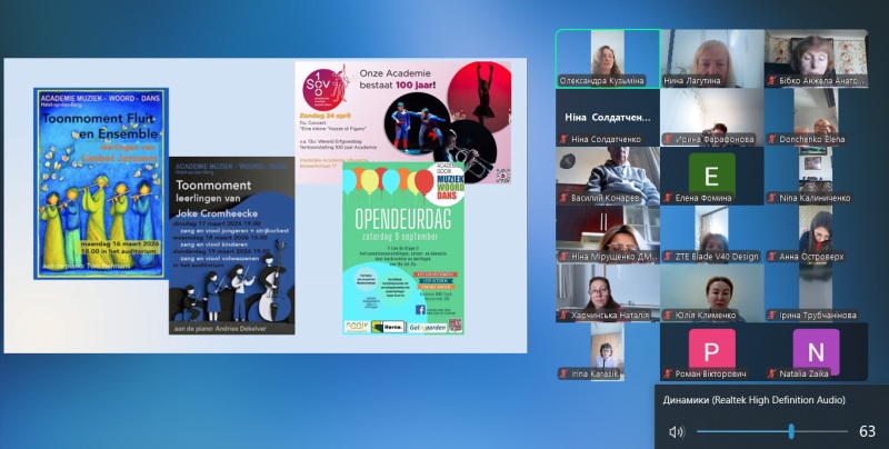 02 квітня 2026 року в режимі онлайн на платформі ZOOM відбулося третє семінарське заняття з підвищення кваліфікації викладачів класу сольного співу за участі Олександри КУЗЬМІНОЇ, доцента кафедри сольного співу та оперної підготовки Харківського національного університету мистецтв ім. І.П. Котляревського, солістки Харківської обласної філармонії за темою: «Позашкільна музична освіта в Бельгії для дітей та юнацтва». .