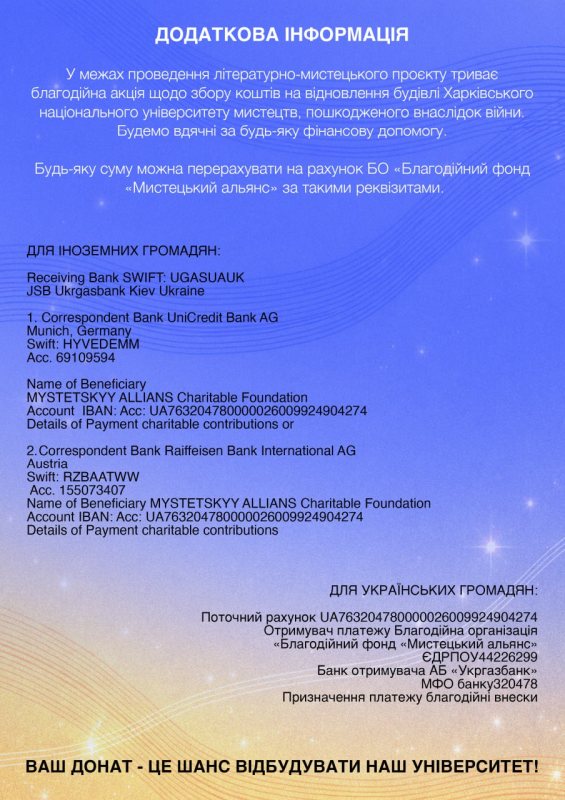 ▫️сплатити благодійний (організаційний) внесок у розмірі 250 грн. Реквізити для сплати благодійного внеску є за посиланням, вказаним вище;
